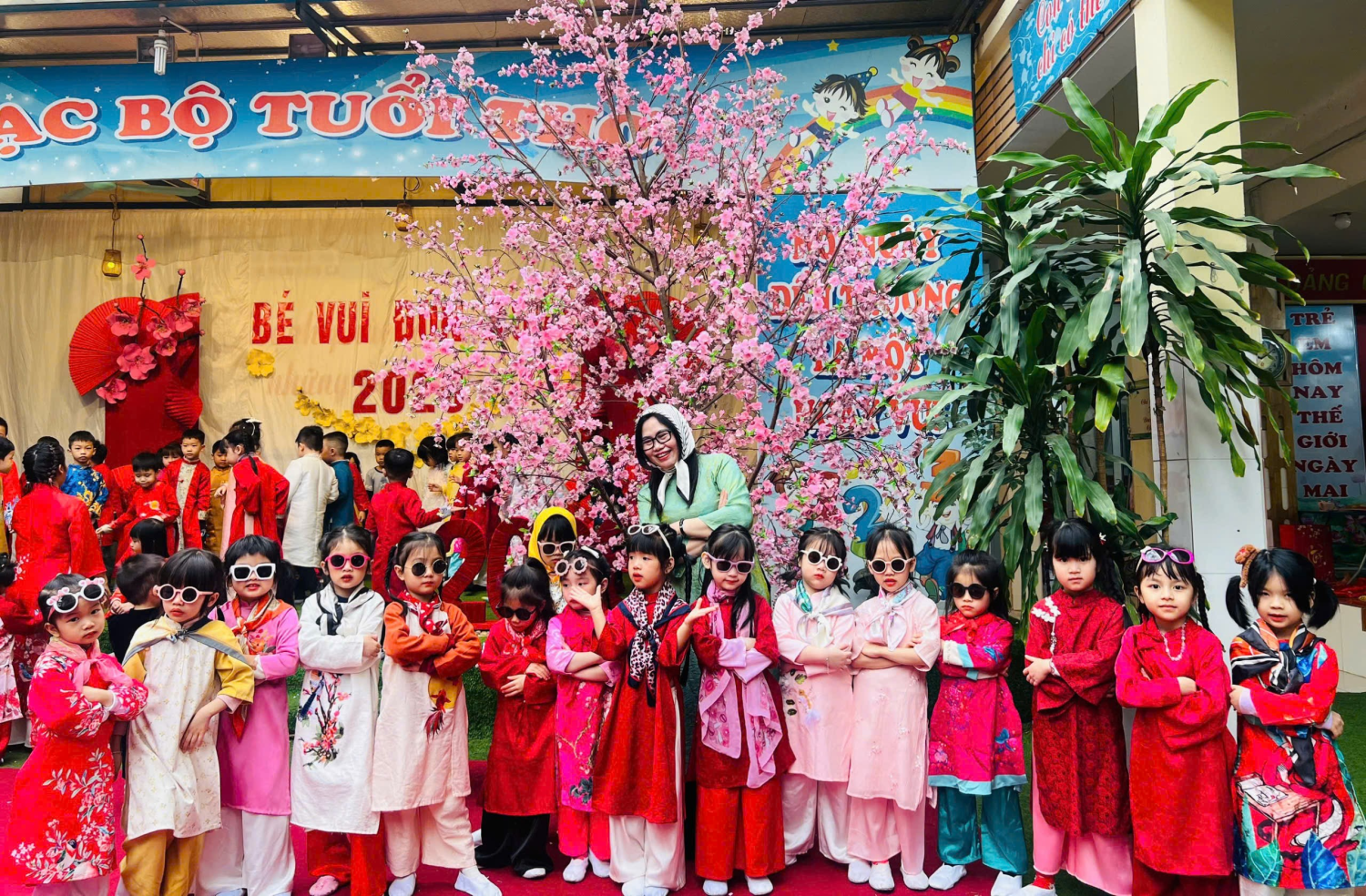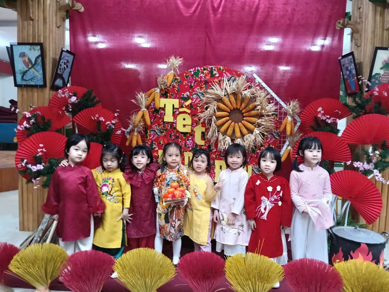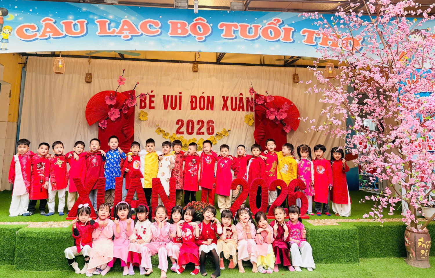 Trong không khí rộn ràng của mùa xuân mới đang về, khi đất trời giao hoà, lòng người hân hoan đón Tết cổ truyền của dân tộc Việt Nam, trường Mầm non Sơn Ca tổ chức chương trình "Bé vui đón Tết 2026" giúp các bé hiểu thêm về nét đẹp truyền thống của ngày Tết Việt Nam và lan toả không khí vui tươi, ấm áp đầu xuân. Bé vui đón Tết là một ngày hội sắc màu mang Tết cổ truyền đến gần hơn với các bạn nhỏ, nơi đây các bạn nhỏ hoà mình vào những giai điệu rộn ràng của những bài ca xuân mà còn trải nghiệm nét đẹp văn hoá của dân tộc như những bộ áo dài truyền thống, các trò chơi dân gian, học cách trao đi những lời chúc yêu thương bên thầy cô và bạn bè. Những hình ảnh vui tươi của các bạn nhỏ trường Mầm non Sơn Ca đã mang không khí Tết đang đến gần:
