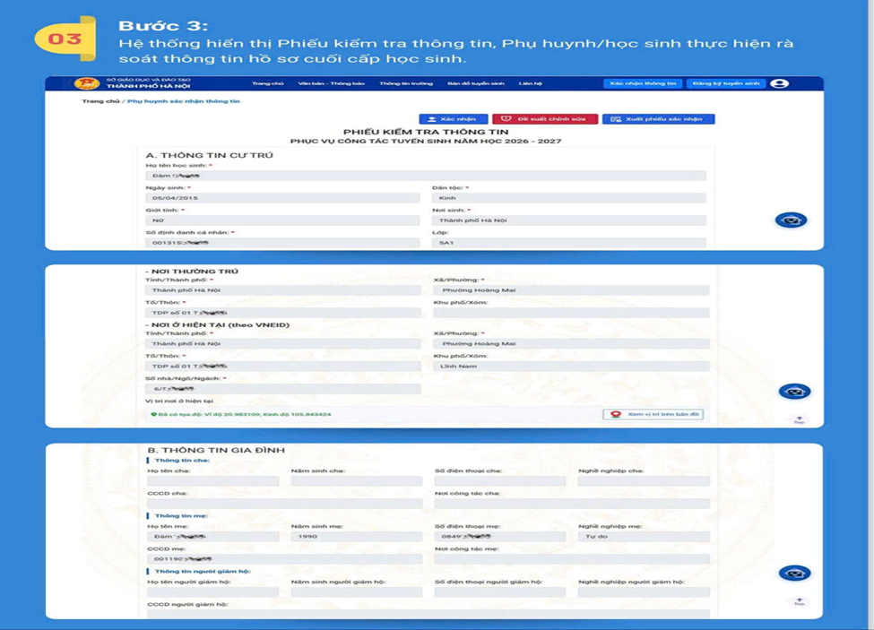 Bước 2: Phụ huynh thực hiện xác nhận thông tin