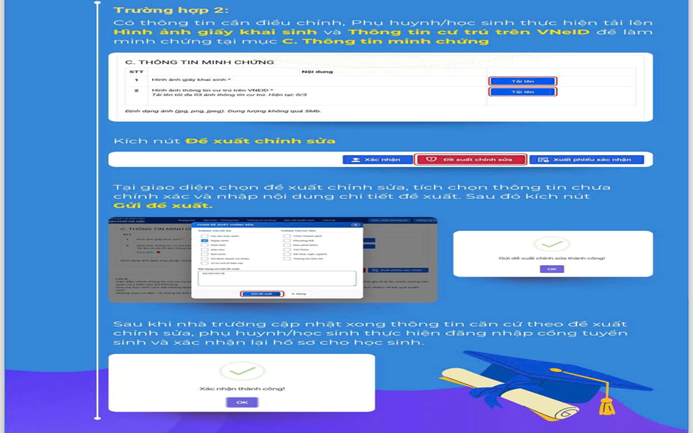 Nếu phát hiện thông tin của học sinh bị sai, phụ huynh có thể đề xuất chỉnh sửa hồ sơ ngay trên hệ thống.