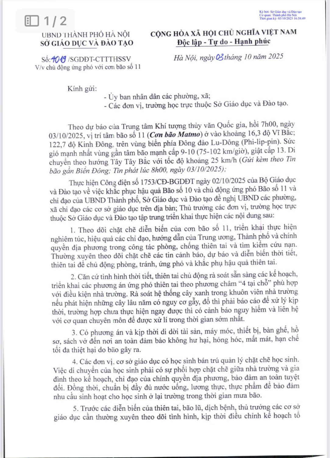 Công văn chỉ đạo của Sở về chủ động ứng phó với cơn bão số 11.